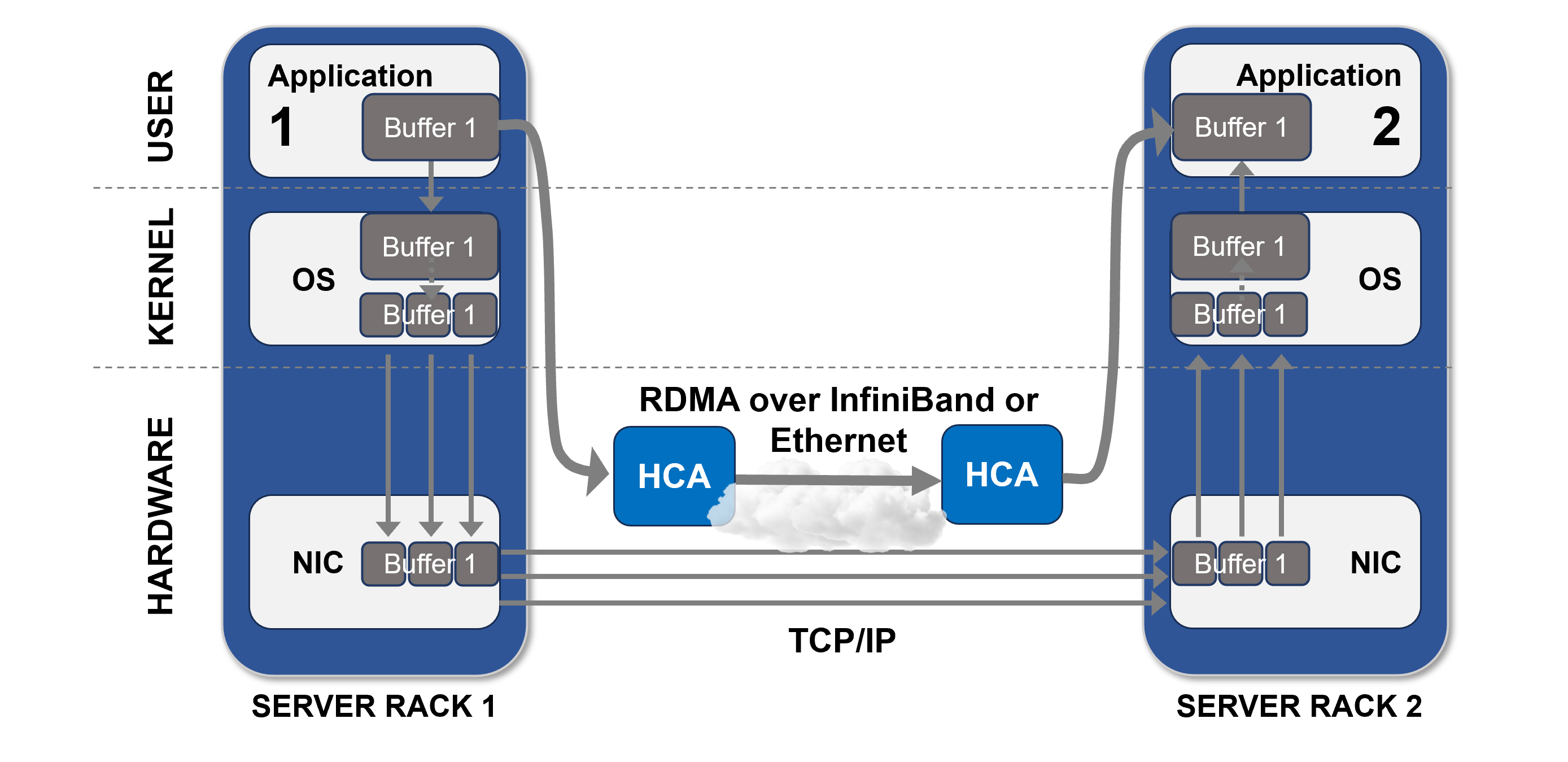 Figure 5. RDMA Transport using InfiniBand or Ethernet (RoCE)